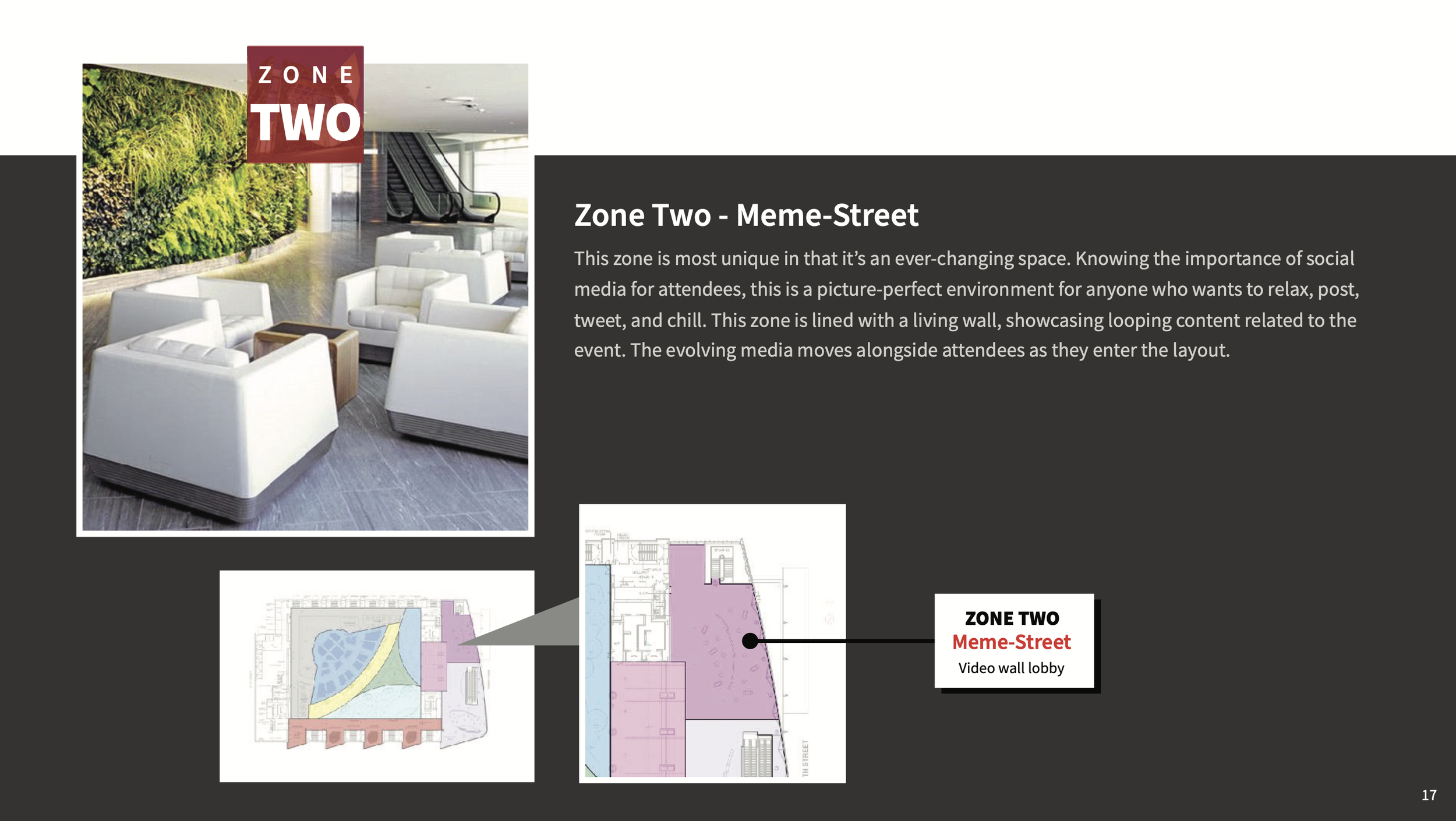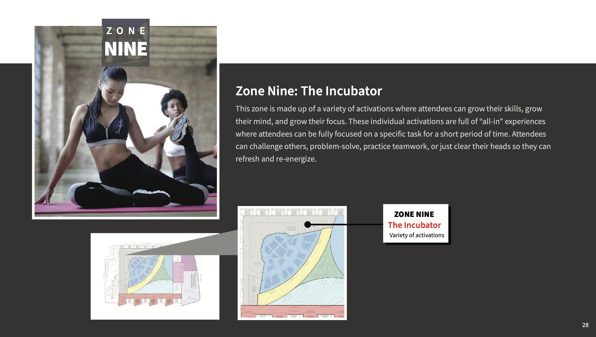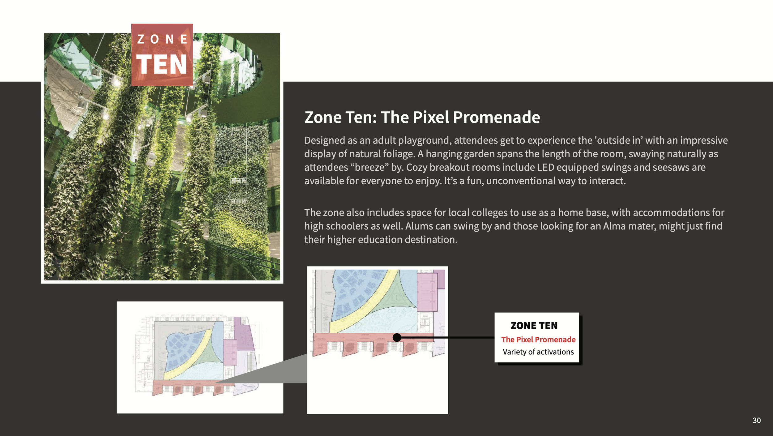 The layout was intentionally organized into ten distinct zones, each with its own energy, activations, F&B moments, décor language, furniture styling, and sponsorship integration opportunities. From high-energy social hubs to more intimate, interactive touch points, every area offered layered ways for brands to show up authentically, through physical engagement, digital components, content capture, and shareable moments. The overarching concept centered on choice: empowering attendees to curate their own journey, selecting how they wanted to engage, explore, and participate. The result was a dynamic, sponsor-rich ecosystem that balanced playfulness with strategy, creating measurable visibility while delivering a memorable, personalized experience.