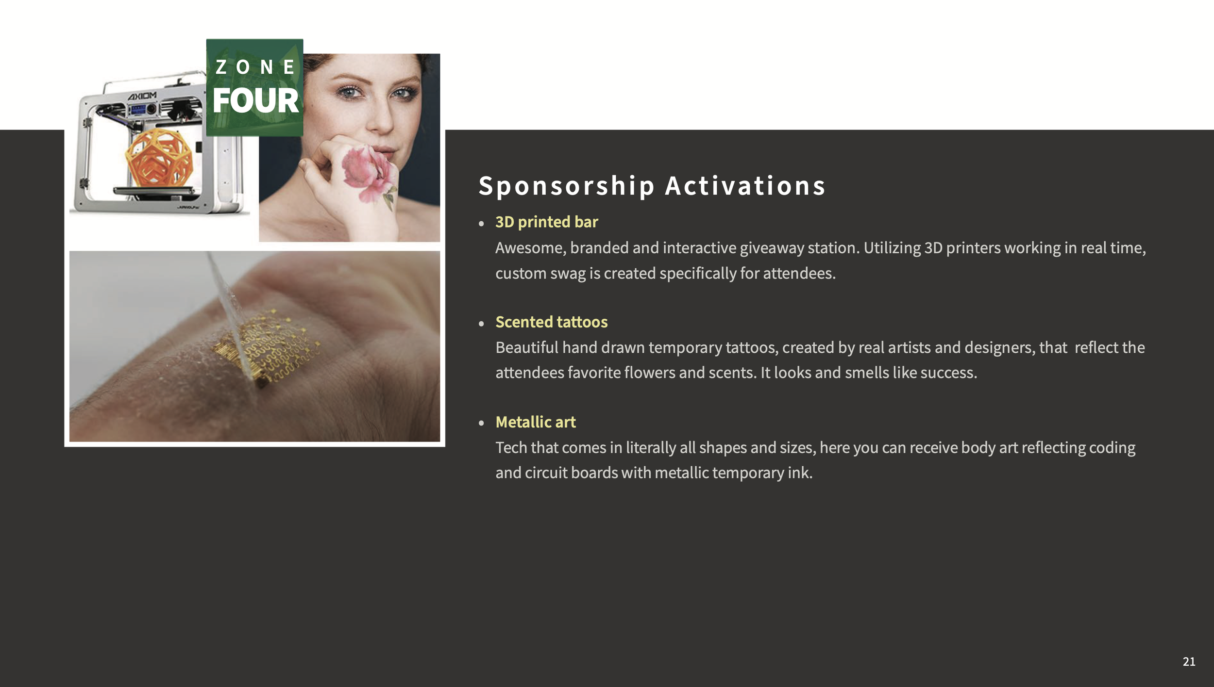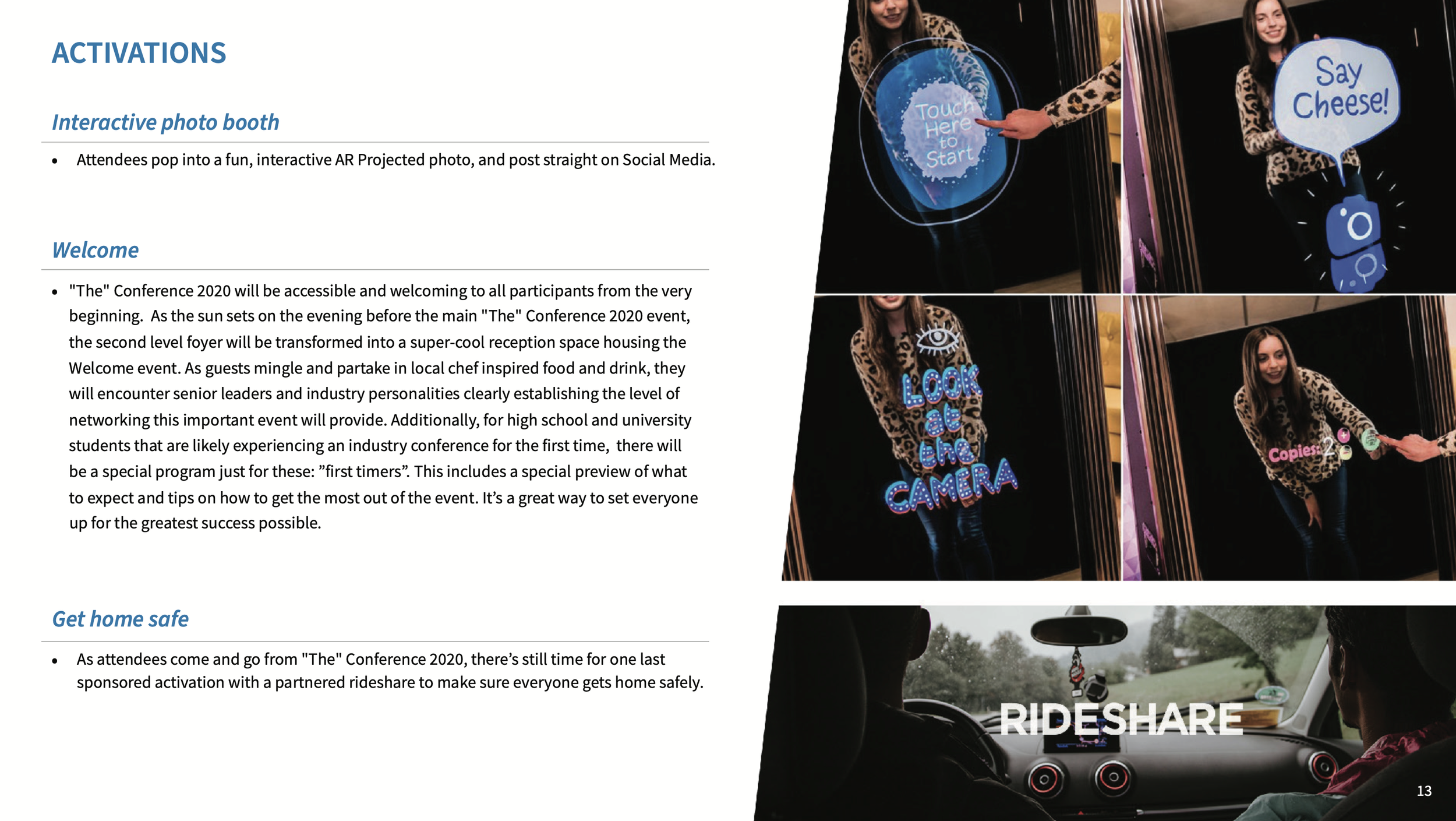 This RFP example was developed to showcase a wide spectrum of brand sponsorship opportunities rooted in hands-on, tactile engagement and strong digital integration. The brief called for an experience that was unmistakably “Instagram-worthy,” but rather than relying on surface-level moments, the strategy focused on designing environments that were visually compelling and experientially meaningful.
